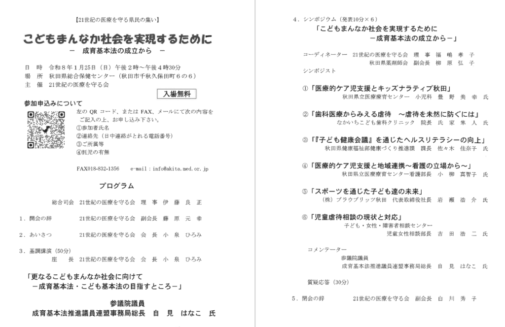 【事務局ⓘ】「21世紀の医療を守る県民の集い」のお知らせ