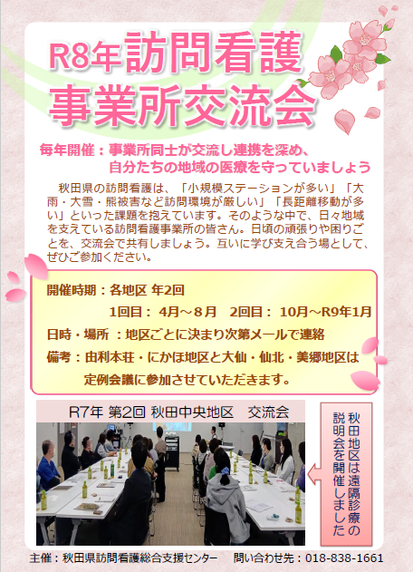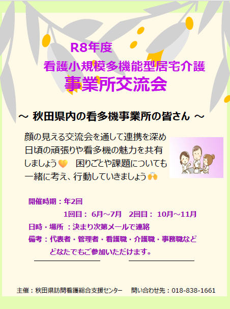 ★ R8年度も 8圏域での訪問看護事業所交流会を開催致します。また、昨年度に引き続き看護小規模多機能型居宅介護事業所交流会も開催致します。