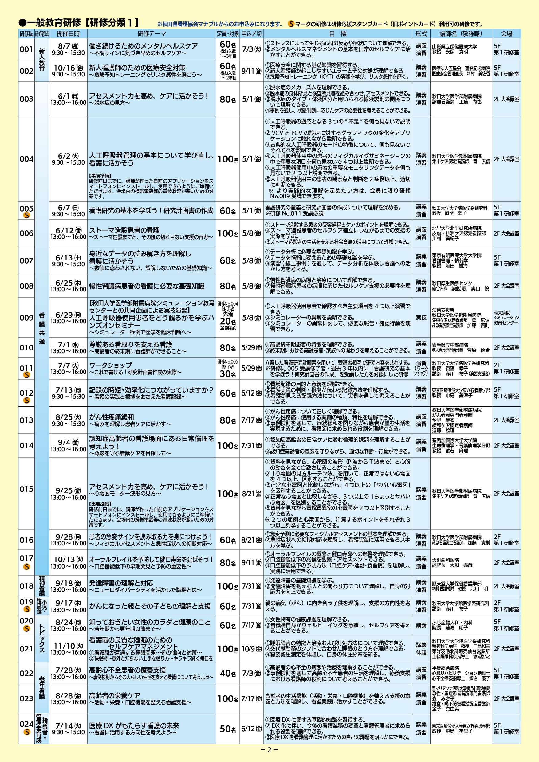 対象:秋田県内の病院に勤務し、指導的役割を担っている看護職員であり、かつ自施設内の職員に対して伝達講習が行える者